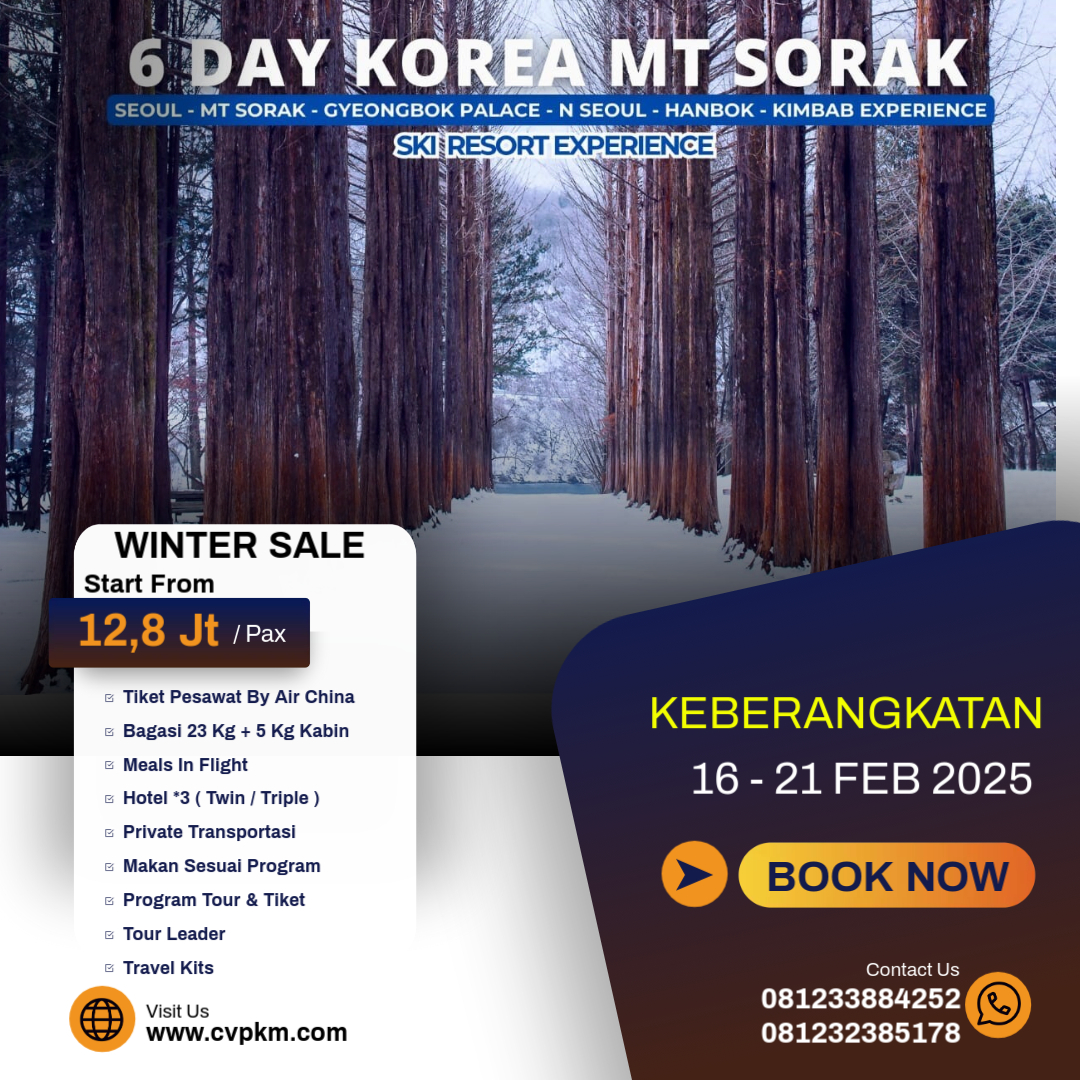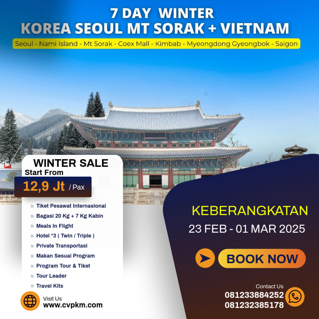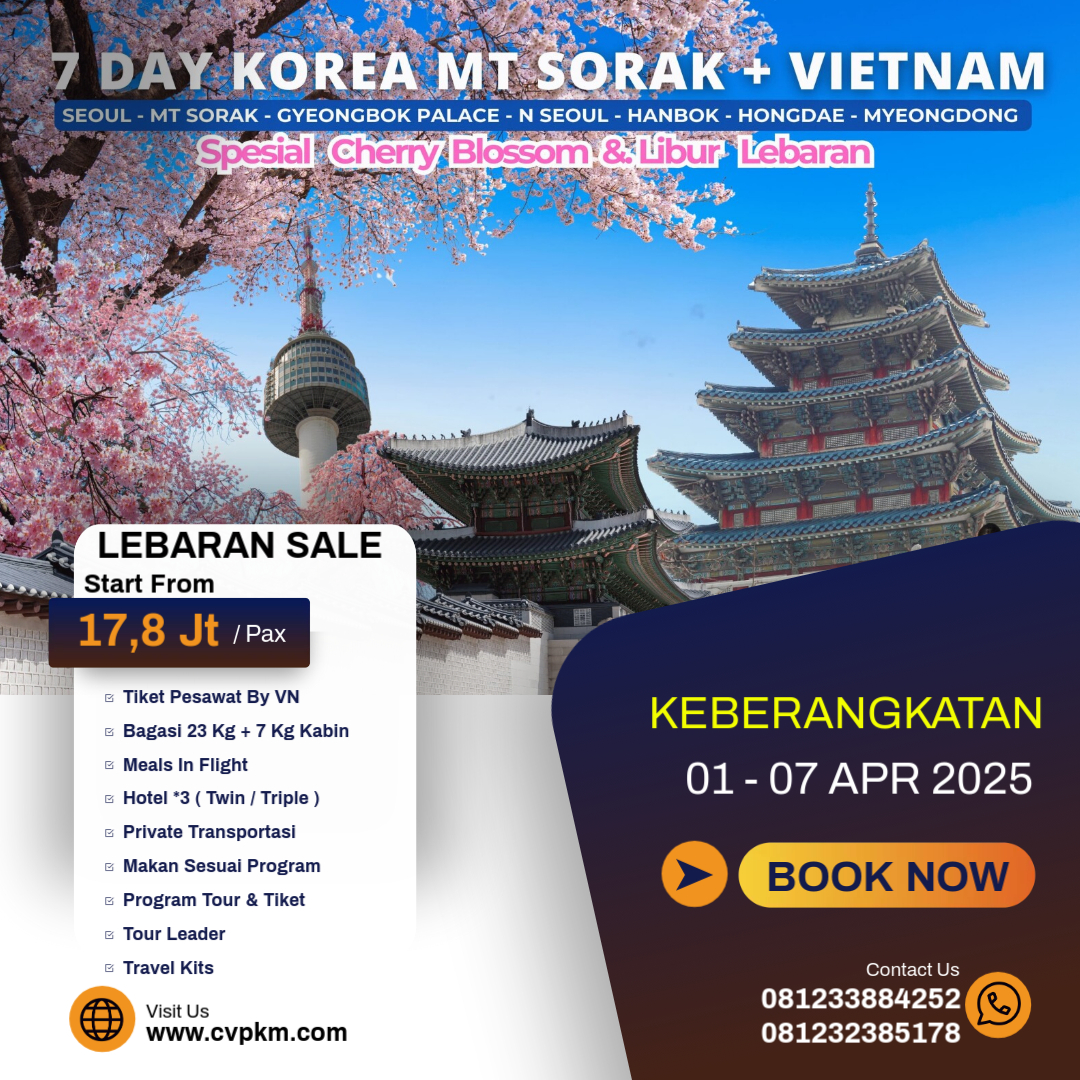 7 DAY LEBARAN CHERRY BLOSSOM KOREA SEOUL MT SORAK NAMI ISLAND PLUS VIETNAM